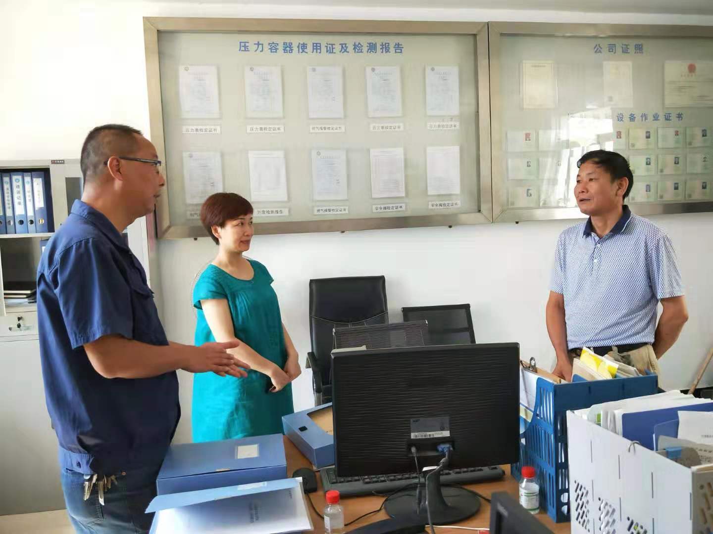 檢查組認(rèn)真審查了充裝人員特種作業(yè)操作資格持證情況,查閱了相關(guān)工作臺(tái)賬和計(jì)量檢定證書(shū)等,并對(duì)車(chē)用氣瓶充裝操作規(guī)范性等進(jìn)行了現(xiàn)場(chǎng)督查。檢查組對(duì)站內(nèi)的規(guī)范性充裝操作給予了肯定,并強(qiáng)調(diào)企業(yè)要時(shí)刻把安全擺在第一位,居安思危,杜漸防微,高溫季節(jié)里,要更嚴(yán)格地落實(shí)充裝人員持證、年審等安全管理工作,全方面保障車(chē)輛安全有序加氣。