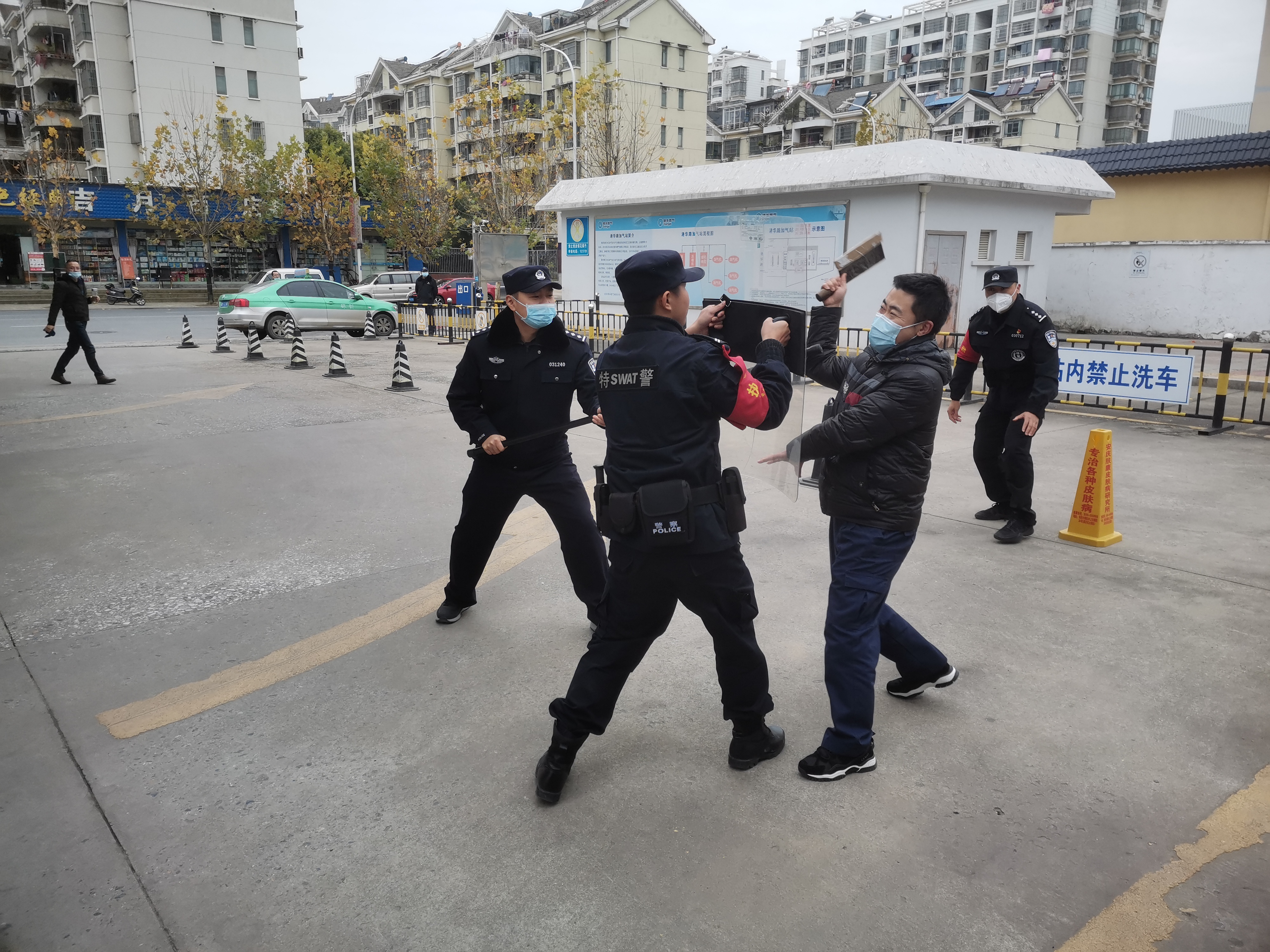 為確保演練效果,分局警官于演練開始前,對港華安保人員進(jìn)行了相關(guān)知識培訓(xùn),并就防爆器材使用方法進(jìn)行了詳細(xì)講解及實操演示。此次演練,現(xiàn)場模擬了加氣站發(fā)生一起歹徒持刀威脅加氣工作人員的惡性事件。值班保安發(fā)現(xiàn)嫌疑人員后,立即手持盾牌及警棍上前阻攔,其他人員迅速配合并撥打轄區(qū)民警電話報警,并由加氣站負(fù)責(zé)人員及時報告公司司反恐應(yīng)急小組。隨后,值班保安利用警棍、鋼叉等配合到達(dá)現(xiàn)場的民警將“歹徒”制服,并扭送至轄區(qū)派出所。