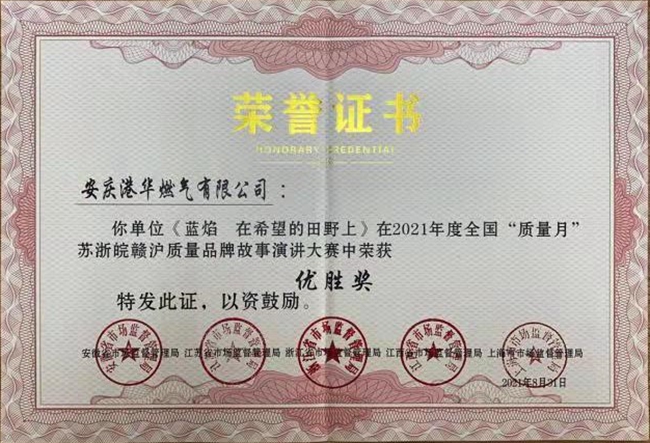 日前,安慶港華燃?xì)膺x送演講視頻作品《藍(lán)焰 在希望的田野上》榮獲2021年全國“質(zhì)量月”蘇浙皖贛滬質(zhì)量品牌故事演講大賽優(yōu)勝獎(jiǎng)。
