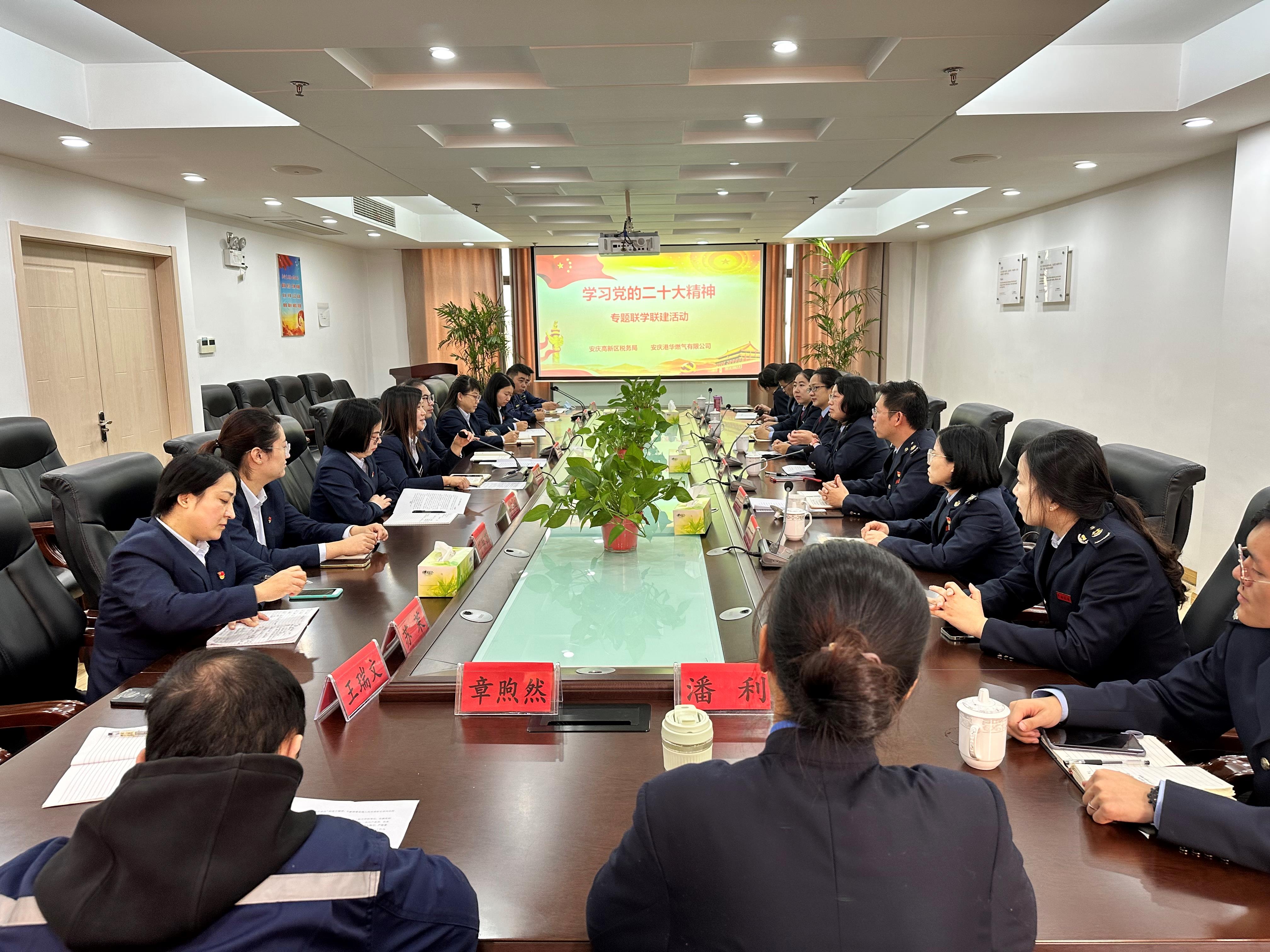 為深入學習貫徹黨的二十大精神, 11月4日上午,安慶高新區(qū)稅務局與安慶港華共同開展“學習黨的二十大精神”專題聯(lián)學聯(lián)建活動,高新區(qū)稅務局紀檢組組長夏明楨, 安慶港華黨委委員、董事會秘書江晨昊,財務總監(jiān)陳莉莉及雙方青年職工代表參加活動。