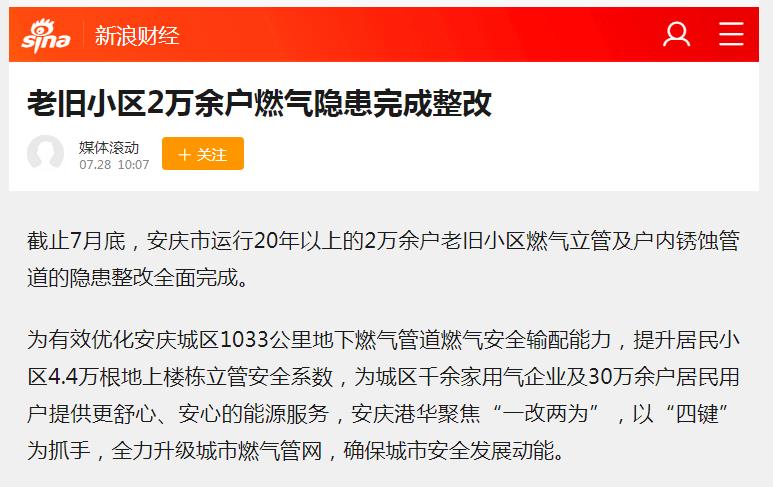 老舊小區(qū)2萬(wàn)余戶(hù)燃?xì)怆[患完成整改(轉(zhuǎn)載于新浪財(cái)經(jīng))