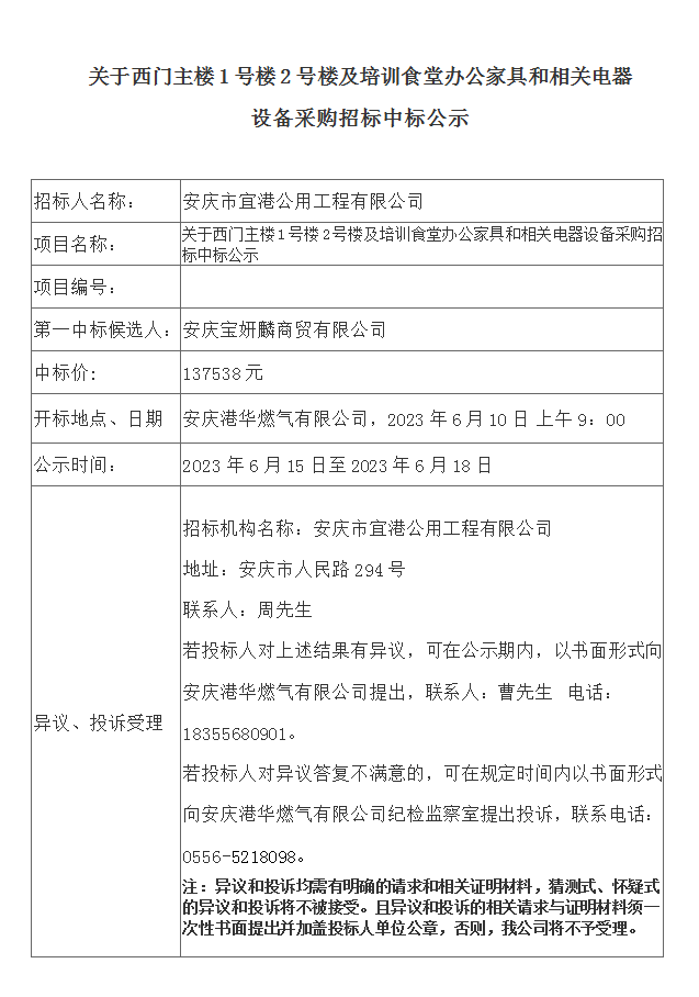 關(guān)于西門主樓1號(hào)樓2號(hào)樓及培訓(xùn)食堂辦公家具和相關(guān)電器設(shè)備采購(gòu)招標(biāo)中標(biāo)公示
