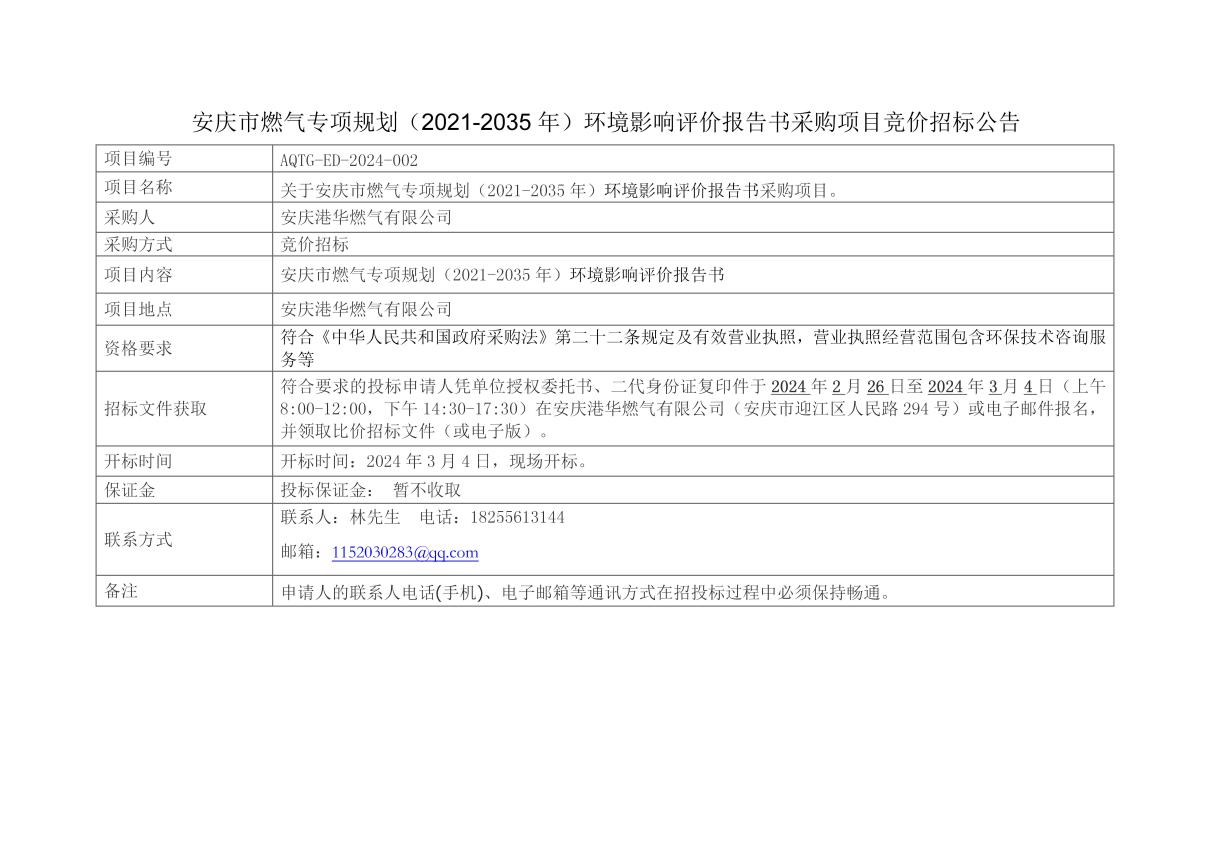 關(guān)于安慶市燃氣專項規(guī)劃(2021-2035年)環(huán)境影響評價報告書采購項目公告