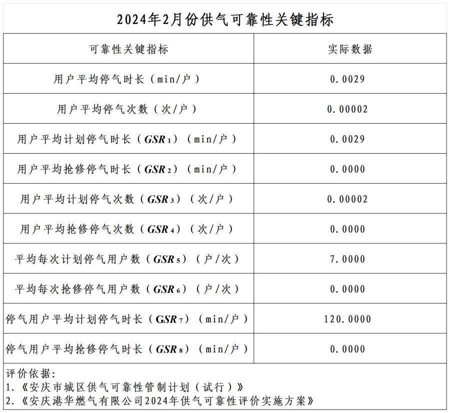 2024年2月供氣可靠性關(guān)鍵指標(biāo)