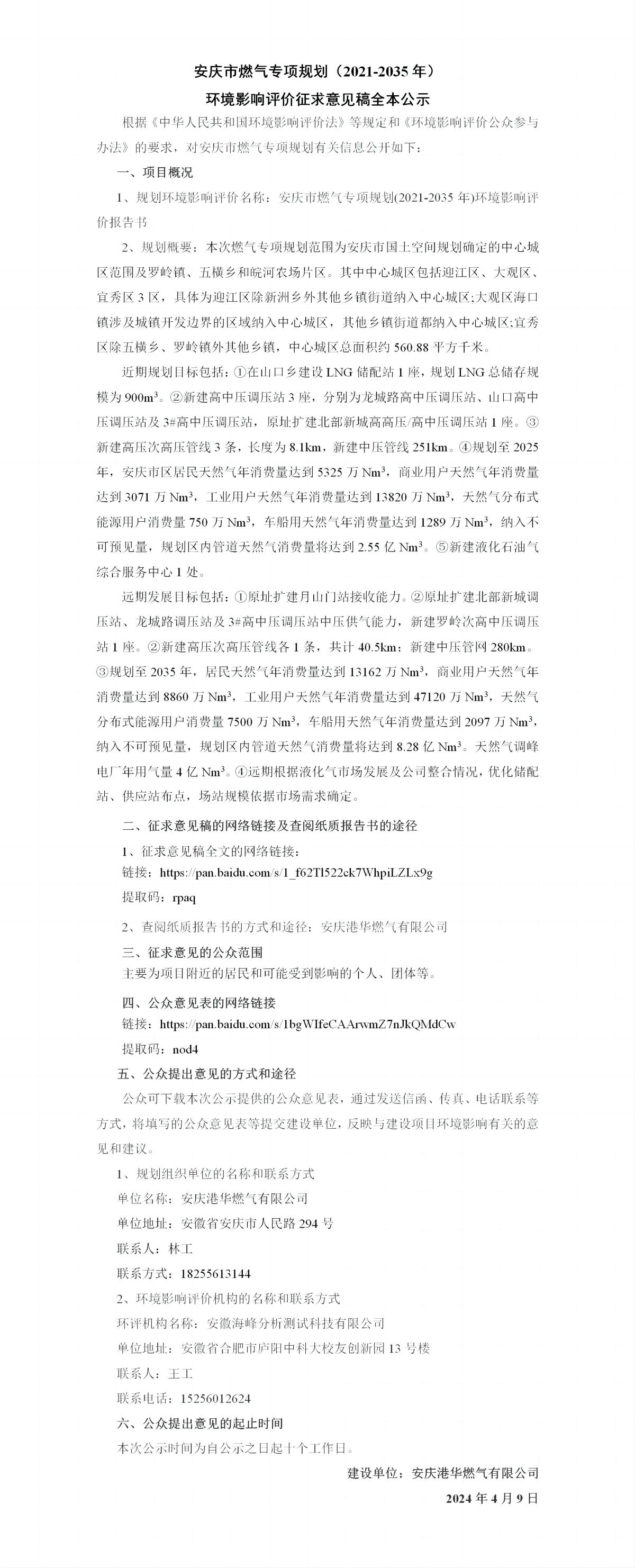 安慶市燃?xì)鈱m?xiàng)規(guī)劃(2021-2035年)環(huán)境影響評(píng)價(jià)征求意見(jiàn)稿全本公示