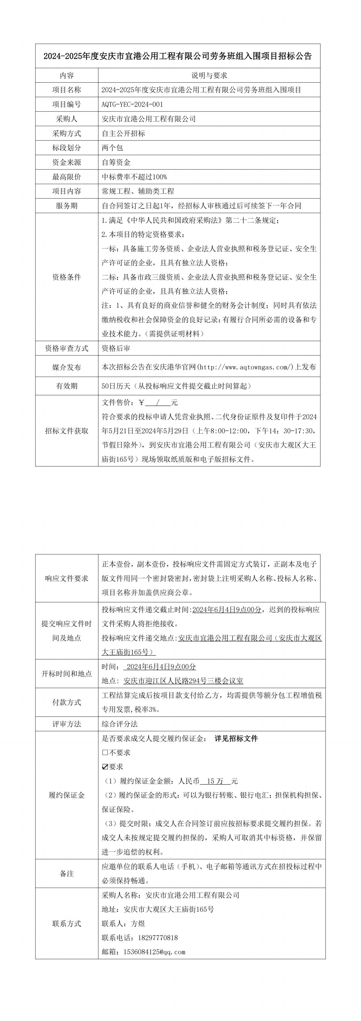 2024-2025年度安慶市宜港公用工程有限公司勞務(wù)班組入圍項(xiàng)目招標(biāo)公告
