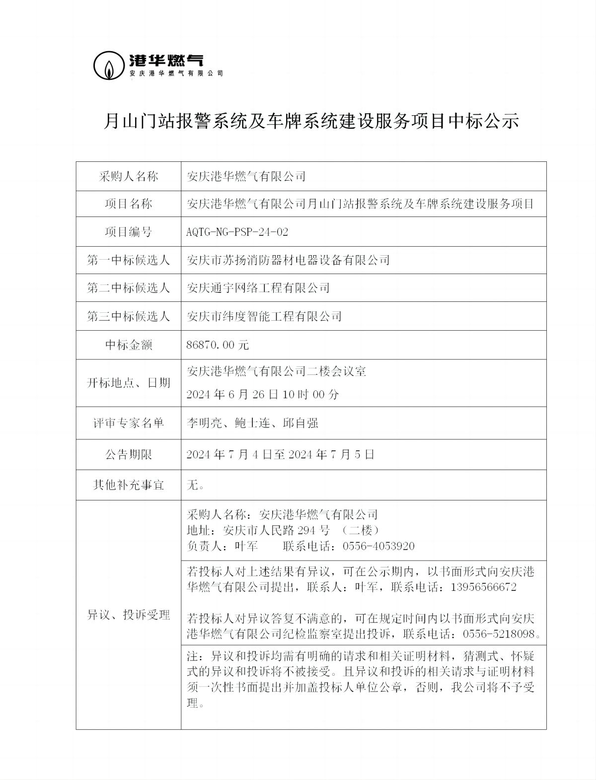 月山門(mén)站報(bào)警系統(tǒng)及車牌系統(tǒng)建設(shè)服務(wù)項(xiàng)目中標(biāo)公示