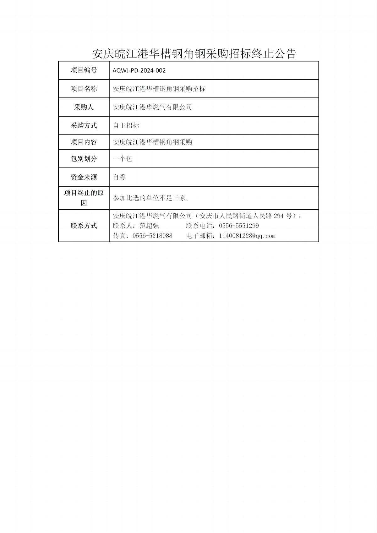 安慶皖江港華槽鋼角鋼采購招標(biāo)終止公告