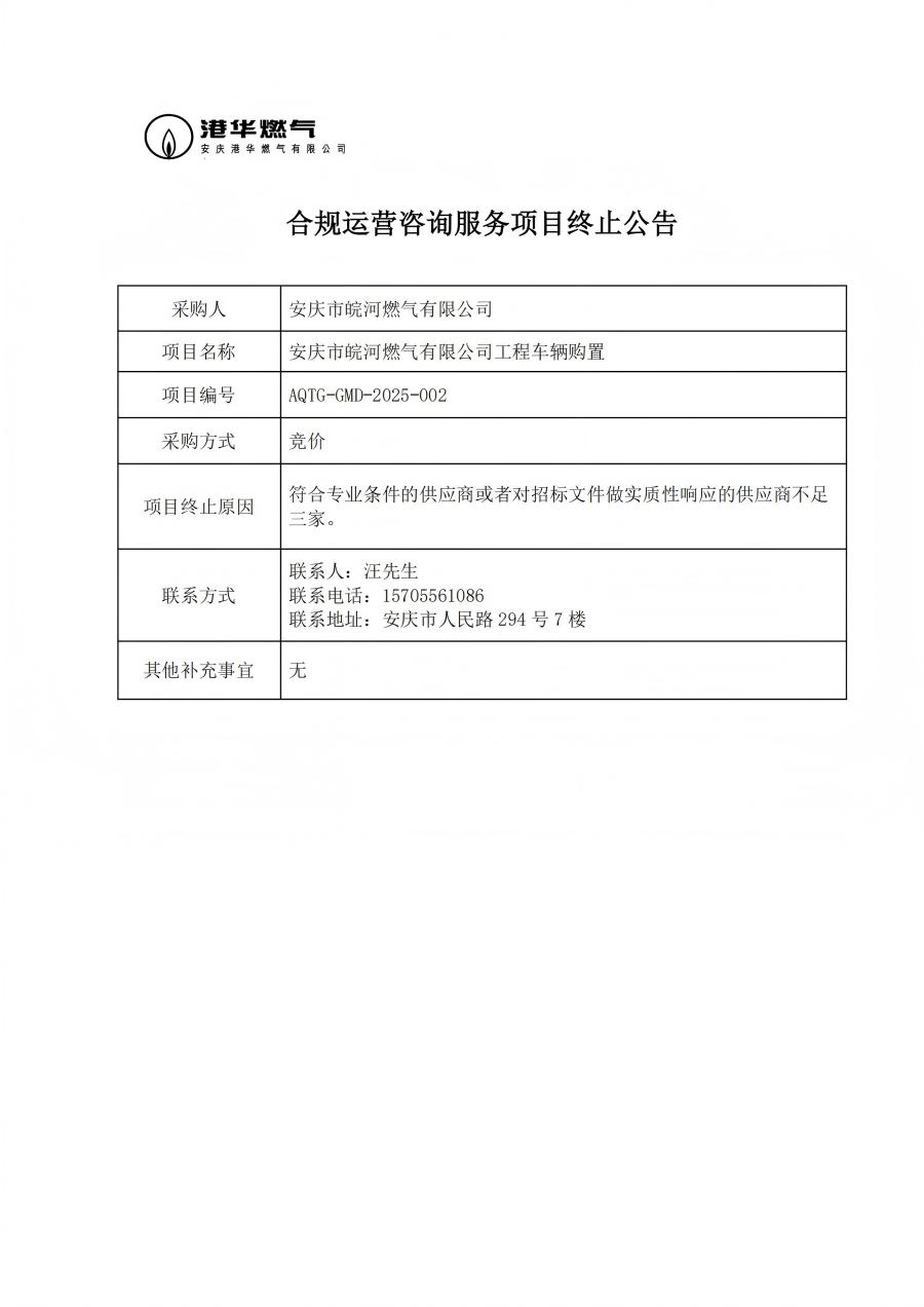 合規(guī)運(yùn)營(yíng)咨詢服務(wù)項(xiàng)目終止公告