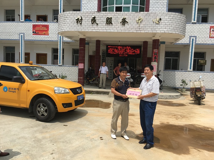 幫扶慰問組一行與村、鎮(zhèn)委有關領導進行了座談,詳細了解平嶺村受災情況。村、鎮(zhèn)委領導對安慶港華一直以來對平嶺村的幫扶工作表示了感謝,楚振剛代表公司表示,對平嶺村的精準扶貧工作是我司踐行“兩學一做”實踐的重要內容,公司駐村干部全力配合村、鎮(zhèn)委幫助受災村民盡快戰(zhàn)勝險情和渡過難關是當前首要工作,安慶港華將繼續(xù)對幫扶村加大關注和幫扶力度。