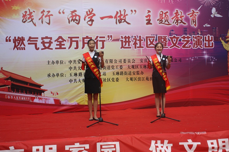9月9日,安慶港華燃?xì)獍踩叭f(wàn)戶行”走進(jìn)濱江苑社區(qū),與社居委文藝工作者一道,以豐富多彩的文藝演出形式向社區(qū)居民宣傳安全知識(shí),提升社區(qū)居民燃?xì)獍踩庾R(shí),掀起企民共創(chuàng)燃?xì)獍踩嘛L(fēng)尚。這是今年安慶港華燃?xì)獍矙z整改年攜手社區(qū)開(kāi)展“消除隱患 家添安心”活動(dòng)以來(lái)公司走進(jìn)的第25個(gè)小區(qū)。