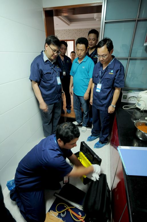 在安慶巡查的第三站——綠地迎江世紀(jì)城小區(qū),主要展示的是小區(qū)戶內(nèi)集中安檢。進(jìn)入小區(qū),映入眼簾的是一排排安檢宣傳、咨詢、安全燃?xì)饩哒故緟^(qū),宣傳展板向居民展示燃?xì)獍踩褂弥R(shí)、燃?xì)馐鹿示炯鞍踩細(xì)饩叩氖褂玫瘸WR(shí),工作人員細(xì)致耐心的解答居民的咨詢,并發(fā)放《燃?xì)饪蛻舭踩脷馐謨浴?。陳總裁等集團(tuán)領(lǐng)導(dǎo)跟隨安檢員來到客戶家中,觀看戶內(nèi)安檢的每個(gè)環(huán)節(jié),當(dāng)安檢人員規(guī)范地完成整個(gè)安檢流程后,陳總裁給予了“很好,不亞于香港水平”的高度評(píng)價(jià)。
