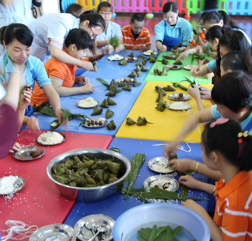 活動中,學(xué)校負(fù)責(zé)人潘金云帶領(lǐng)義工隊員們參觀了康復(fù)中心并介紹情況,得知為了幫助這群折翼的天使塑造“心理健康、身體健康、社會活動能力、就業(yè)能力”,康復(fù)中心每一位老師所付出艱辛和努力的故事后,大家深受感動。聯(lián)誼中,孩子們被熱烈的氣氛感染,認(rèn)真地表演了黃梅戲選段、詩朗誦等才藝,展現(xiàn)出的自信、堅強和堅持,深深地感動了在場的每一位義工隊員。聯(lián)誼后,義工隊員們一邊與孩子們耐心交流,一邊手把手地交孩子們包裹蜜棗愛心粽,看著自己包出來的勞動成果,孩子們個個笑開了花,現(xiàn)場呈現(xiàn)出一片其樂融融的景象。