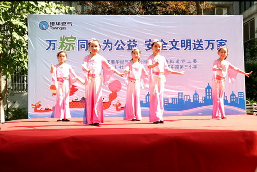 當(dāng)日,安慶港華的義工隊(duì)員和“藍(lán)焰”黨員義工們?cè)缭鐏?lái)到炮營(yíng)山社居委轄區(qū)的諧水灣小區(qū),撐帳篷,搭展臺(tái),搬物料,一場(chǎng)以“包粽子、看演出、講安全、傳文明”為主題的文化大餐陸續(xù)上演?;顒?dòng)現(xiàn)場(chǎng)熱鬧非凡,不少用戶(hù)正在港華燃?xì)獾摹傲鲃?dòng)服務(wù)車(chē)”前排隊(duì)進(jìn)行燃?xì)鈭?bào)裝和繳費(fèi),服務(wù)臺(tái)的工作人員一邊發(fā)放著燃?xì)獍踩麄魇謨?cè),一邊針對(duì)居民的用氣問(wèn)題耐心作答。而廣場(chǎng)正中央搭建的演出舞臺(tái)更是吸引不少居民駐足圍觀,安慶港華燃?xì)夂蜕鐓^(qū)居民聯(lián)合打造的精彩紛呈的文藝表演正在進(jìn)行。既有優(yōu)揚(yáng)的港華企業(yè)歌曲,又有優(yōu)雅的服務(wù)禮儀表演;社區(qū)阿姨們的廣場(chǎng)舞,舞出了歡樂(lè),舞出了自信,來(lái)自轄區(qū)學(xué)校孩子們有模有樣的黃梅戲表演,讓我們看到了傳統(tǒng)戲曲文化的美好傳承;穿插其間的燃?xì)獍踩R(shí)有獎(jiǎng)問(wèn)答更是引得眾人踴躍參與,掌聲、歡呼聲此起彼伏。而臺(tái)下社區(qū)阿姨和港華義工在欣賞精彩文藝演出的同時(shí),還不忘巧手裹粽,不多會(huì),桌上就擺滿(mǎn)了幾百只飄著粽葉香的愛(ài)心粽,既弘揚(yáng)了傳統(tǒng)文化,又增進(jìn)了企業(yè)和居民之間的感情,現(xiàn)場(chǎng)呈現(xiàn)出一片文明和諧,奮進(jìn)向上的氛圍。