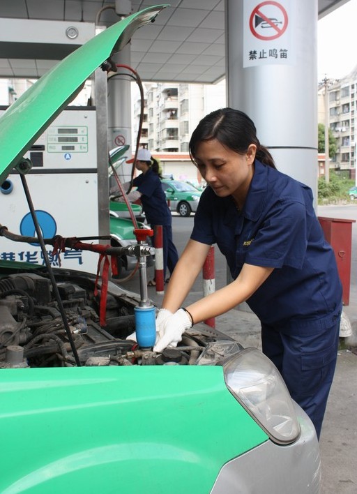 我市出租車因車型原因,車用氣瓶容積相對(duì)其它城市小,天氣炎熱,出租車開啟空調(diào)后,用氣量明顯增加,加氣的次數(shù)也由平日的一天2次增加到一天3-4次。港華路加氣站也因臨近市區(qū),大部分車主習(xí)慣扎堆到這里加氣。另外由于出租車交接班的習(xí)慣,一般上午10:30-12:00,下午4:30-6:00加氣的車輛會(huì)明顯增加,成為加氣的高峰時(shí)段。針對(duì)這些情況,安慶港華高度重視,積極采取有效措施進(jìn)行疏導(dǎo)和分流,避免出現(xiàn)出租車加氣排長(zhǎng)隊(duì)現(xiàn)象。