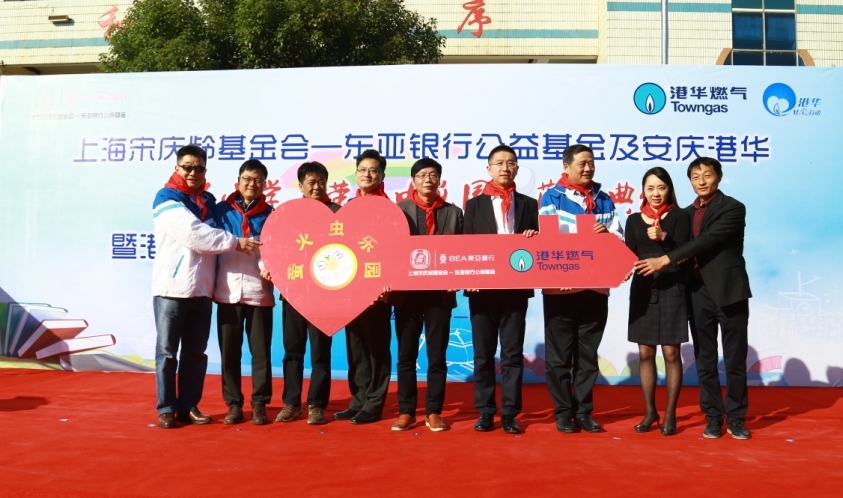 11月1日,港華燃?xì)饧瘓F(tuán)攜手上海宋慶齡基金會(huì)—東亞銀行公益基金,在太湖縣大石小學(xué)舉行“螢火蟲樂園”落成典禮暨港華集團(tuán)華東地區(qū)“輕風(fēng)行動(dòng)”揭牌儀式。來(lái)自安慶市扶貧辦、市住建委、太湖縣政府、縣教育局的有關(guān)領(lǐng)導(dǎo),以及東亞銀行(中國(guó))、港華燃?xì)饧瘓F(tuán)、港華集團(tuán)華東義工總隊(duì)、安慶港華燃?xì)獾?/span>70余位嘉賓和義工出席并見證了典禮儀式。