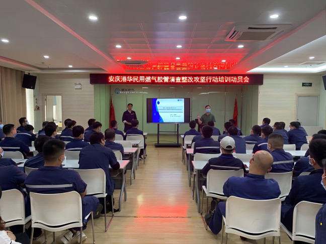 為貫徹落實住房和城鄉(xiāng)建設(shè)部辦公廳關(guān)于《加快排查整改燃?xì)庀鹉z軟管安全隱患的通知》精神,安慶港華高度重視,公司主要領(lǐng)導(dǎo)第一時間召開專題會議并制定民用膠管清查整改實施方案,由公司客戶服務(wù)部牽頭組織行動,各部門配合協(xié)助,并于5月27日上午召開全市民用膠管清查整改攻堅行動動員會。