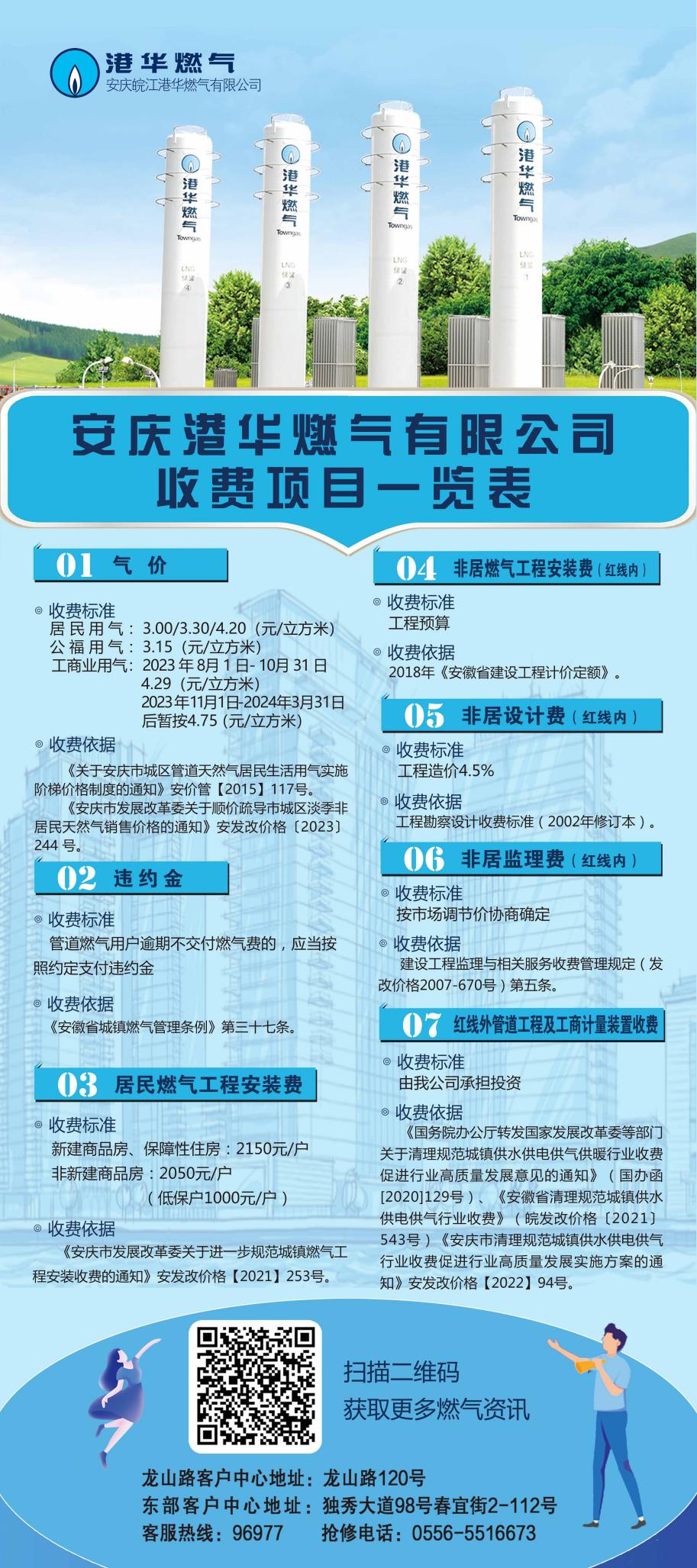 安慶港華燃?xì)庥邢薰臼召M(fèi)項(xiàng)目一覽表(2023.11.07)